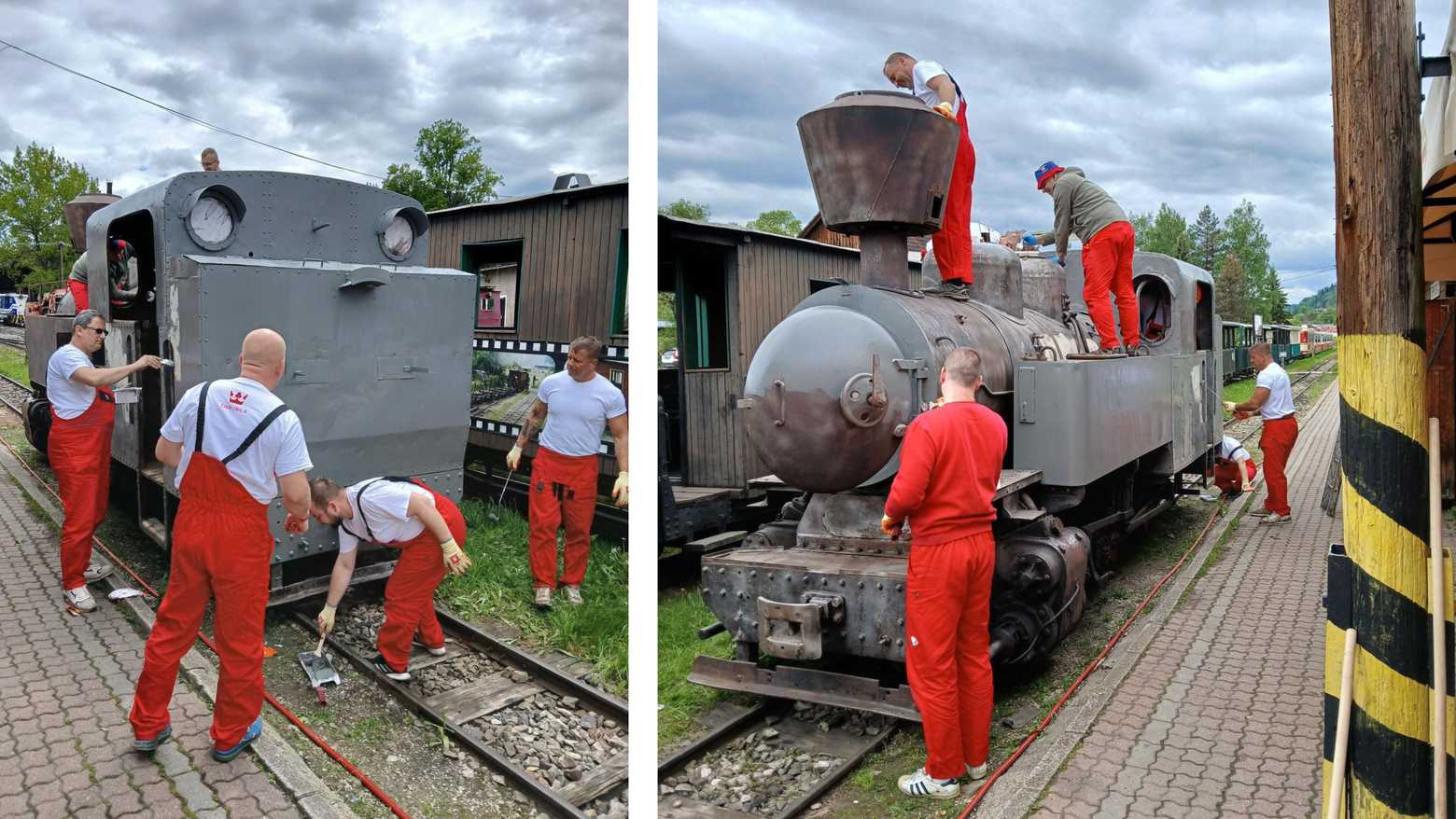 Po dvou dnech intenzivní práce se nám podařilo dosáhnout výsledku, který opravdu stojí za to – lokomotiva opět září jako kdysi. A i když už nikdy nevyjede na koleje, stane se vzácnou památkou vystavenou před železniční stanicí, která bude připomínat časy páry a železa.